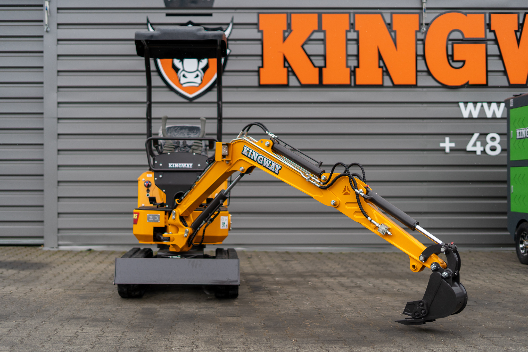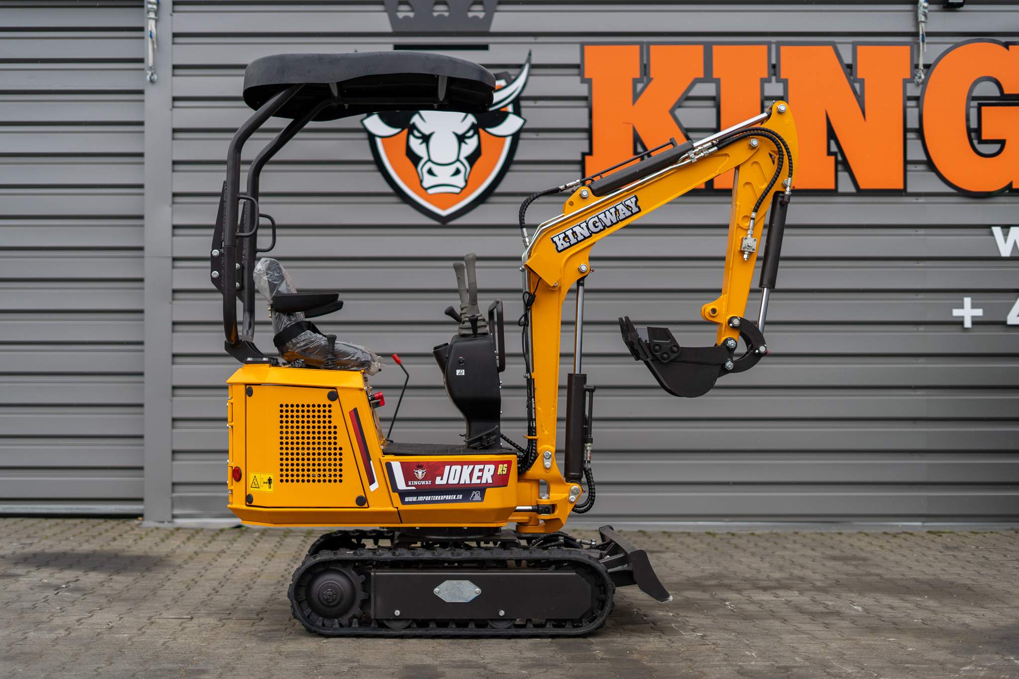 JOKER RS – Minibagger auf Ketten. Moderner Minibagger JOKER RS – professionell und langlebig. Das JOKER RS-Modell ist die ideale Ausrüstung für die anspruchsvollsten Bau-, Elektro-, Sanitär-, Renovierungs- und Dienstleistungsunternehmen in ähnlichen Branchen. Das Modell JOKER RS ist zusätzlich mit einem Schwenkarm ausgestattet, was das Arbeiten in engen Räumen erheblich erleichtert. Wir garantieren auch den Geräteservice nach Ablauf der Garantie. Minibagger werden auf Basis und unter Aufsicht europäischer Techniker hergestellt. Die Ausrüstung besteht aus einer starken Struktur und kann unter allen Bedingungen eingesetzt werden.