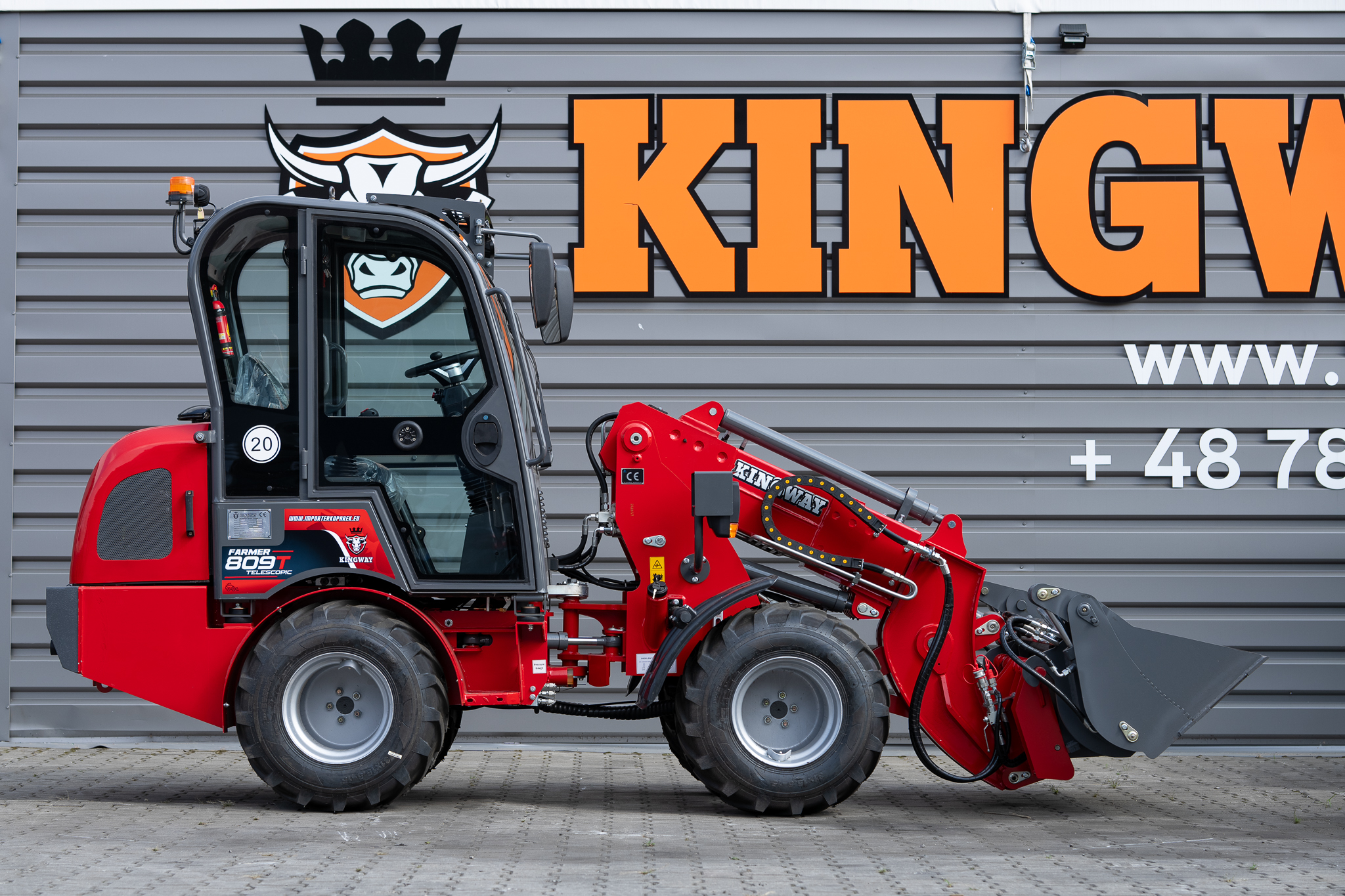 Der moderne Teleskoplader FARMER 809T – professionell und langlebig. Das Modell FARMER 809T ist das ideale Gerät für die anspruchsvollsten Bau-, Elektro-, Sanitär- und Renovierungsunternehmen sowie für ähnliche Branchen. Wir bieten auch einen Service nach Ablauf der Garantie an. Die Radlader werden unter Aufsicht europäischer Techniker hergestellt. Das Gerät ist auf einer robusten Konstruktion aufgebaut und kann unter allen Bedingungen arbeiten. Die komfortable, verglaste Kabine ermöglicht sicheres und angenehmes Arbeiten. Die Hubhöhe der Maschine beträgt bis zu 3,5 m.