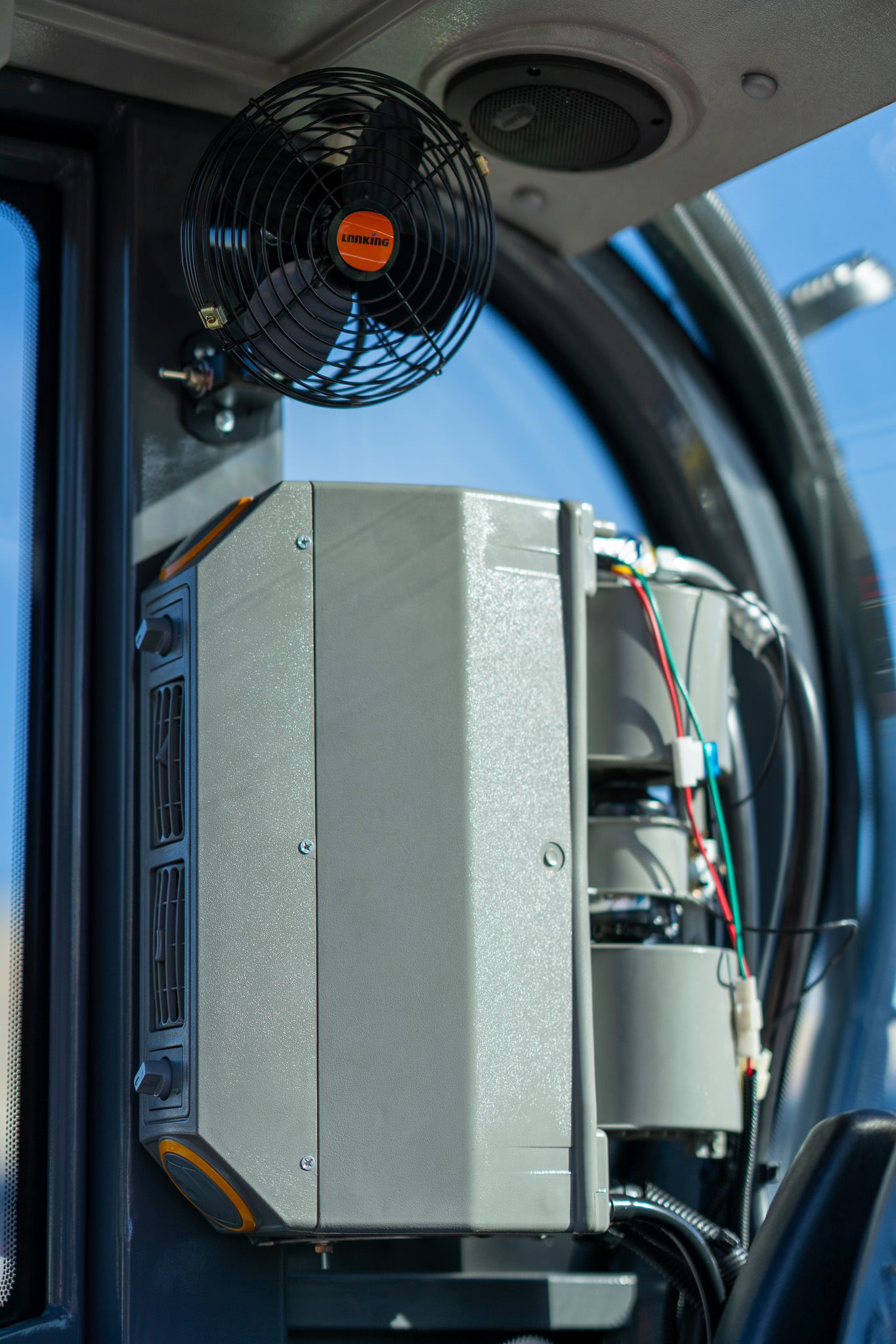 Die komfortable, verglaste Kabine ermöglicht ein sicheres und angenehmes Arbeiten.